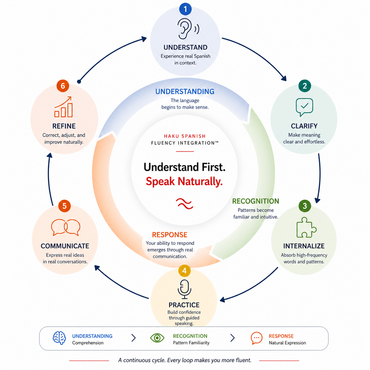 The Haku Spanish Fluency Integration™ is not about learning more.